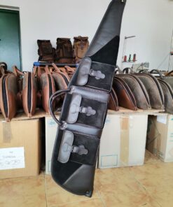 For functionality, the case features a flap-covered ammo pocket (22 x 15 x 2 cm) and a silencer pocket (36 x 7 x 4 cm). Additionally, a premium zipper extends along the full length and supports a padlock for secure travel. A leather shoulder strap adds comfort and freedom of movement during long treks.